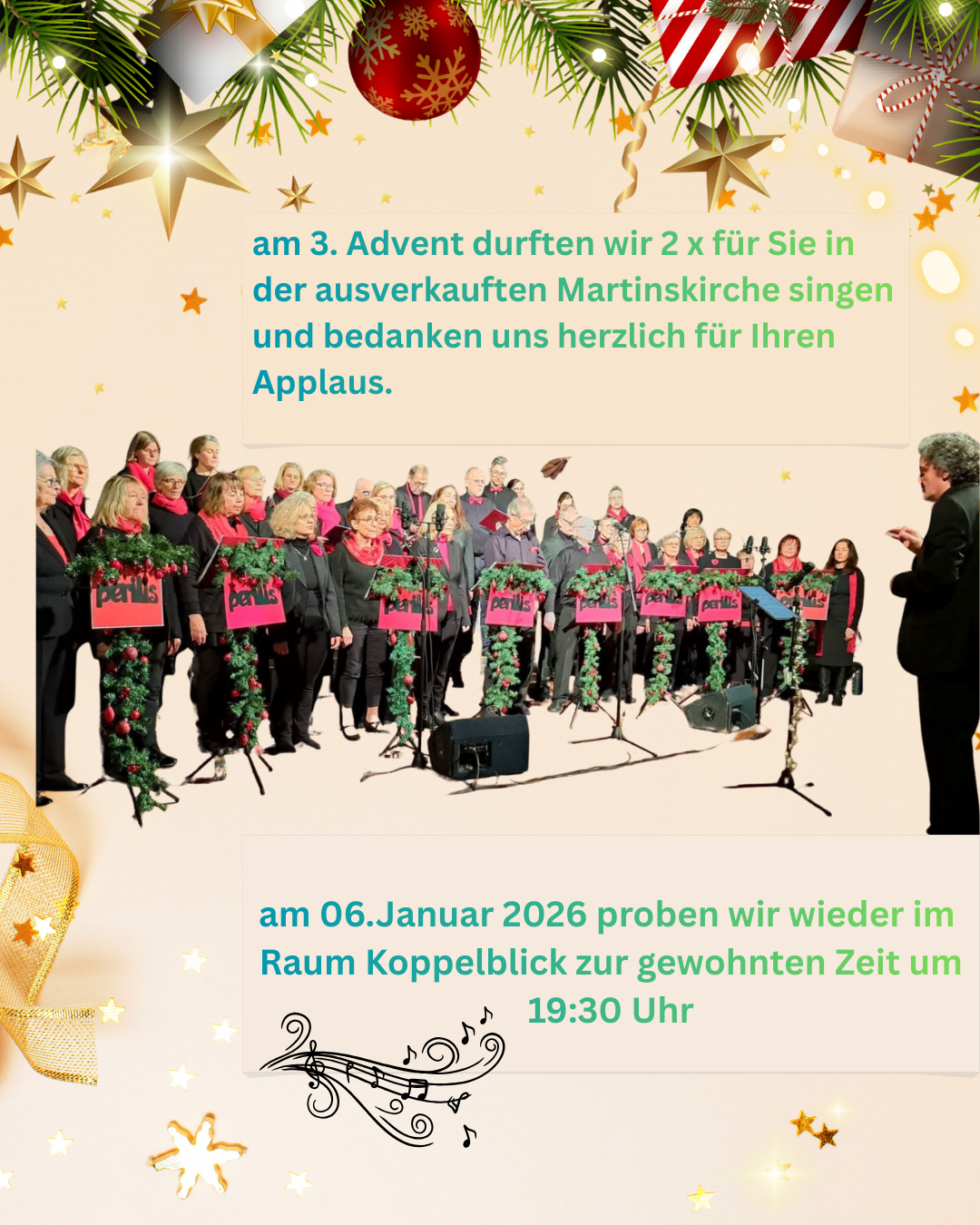 Nach 33 Jahren als Chormitglied und davon 18 Jahre als erste Vorsitzende mit immer engagiertem Einsatz für „ihren Chor“ mussten wir von Christine viel zu früh Abschied nehmen.